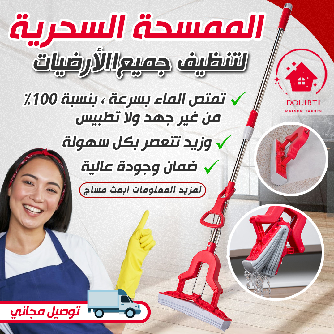 LIVRAISON GRATUITE ! Le Balai Magique Auto-Essorage rend le ménage rapide, facile et efficace ! Grâce à sa tête double face et rotative à 360°, il nettoie tous types de sols sans effort. Son système d’auto-essorage mains libres garde vos mains propres, tandis que ses tampons en microfibre lavables et réutilisables éliminent les tampons jetables coûteux. Léger, télescopique et ergonomique, il vous fait gagner du temps et de l’énergie pour un sol impeccable à chaque passage.
